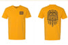 North African Tribal designs fill the shape of a Hamsa hand on the back. Logo and signature on chest front. silkscreened black ink on Canvas Brand T-shirt. Specify Size S,M,L,orXL also available in white